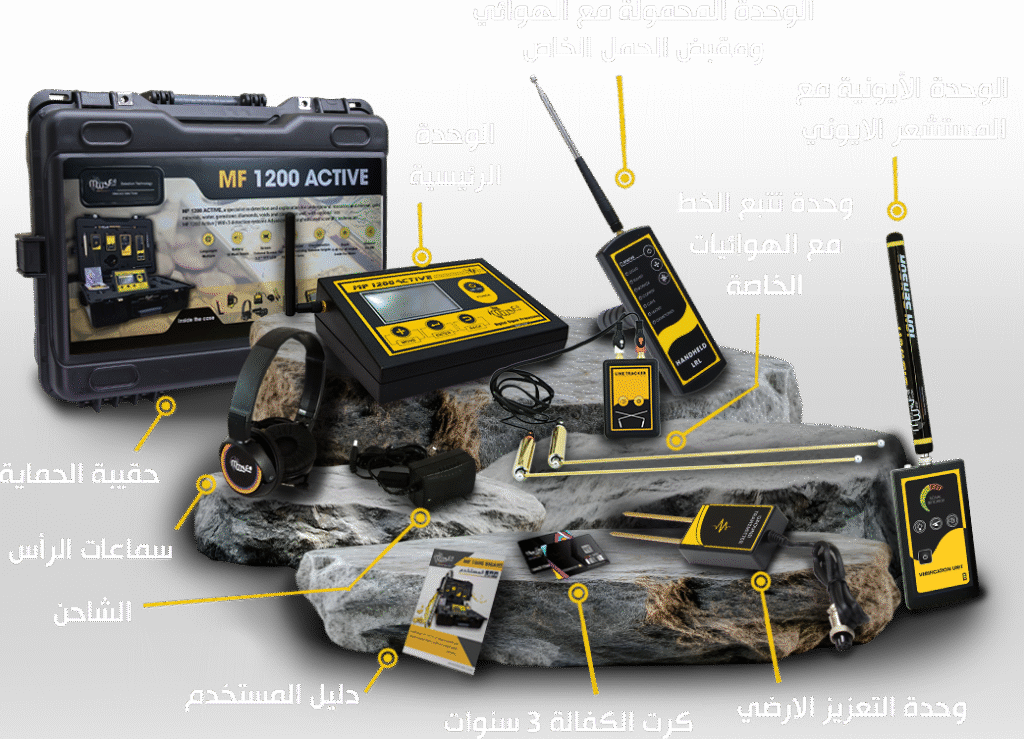جهاز MF-1200 ACTIVEهو أحدث ابتكار في مجال الكشف والتنقيب عن الثروات الباطنية، بما في ذلك الذهب، المعادن، المياه الجوفية، الأحجار الكريمة، الألماس، والفراغات. تم تطويره ليكون النسخة المتقدمة لجهاز MF-1200،